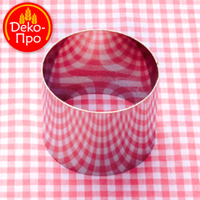 Размеры: диаметр - 80 мм.; высота - 65 мм.Предназначена для выпечки бисквита, для формирования заливных тортов. Изготовлена из нержавеющей стали. Позволяет изготовлять торты и пирожные нарезные различного размера и веса.