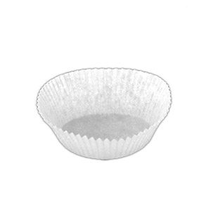 Гофрированная капсула из пергаментной бумаги круглой формы, белого цвета для упаковки кондитерских изделий, диаметр дна 27 мм, высота бортика 16,5 мм.Плотность бумаги 55 г/м2.
