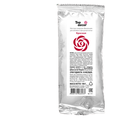 Мастика сахарная фас ванильная красная (0,1 кг) (1упак х12 шт) Деко-Про tp66033
