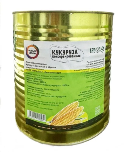 Кукуруза консервированная 3000 мл Новый сезон (упаковка 4 шт)