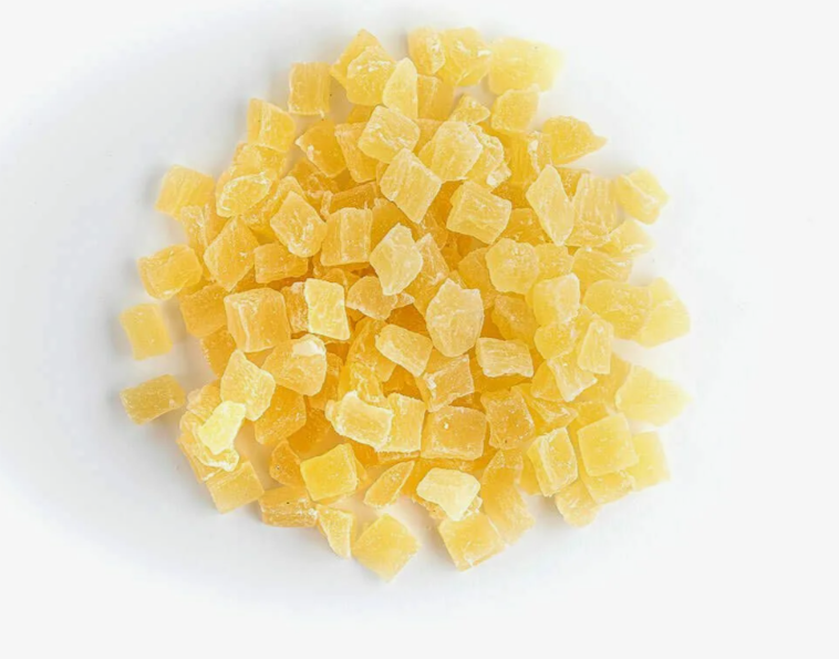 Натуральный сушеный ананас в сахарном сиропе. Разноцветные кубики благодаря сладкому вкусу, широко применяются в кондитерских изделиях, в молочных продуктах, в кашах и в других различных блюдах. Используются в пасхальные куличи.