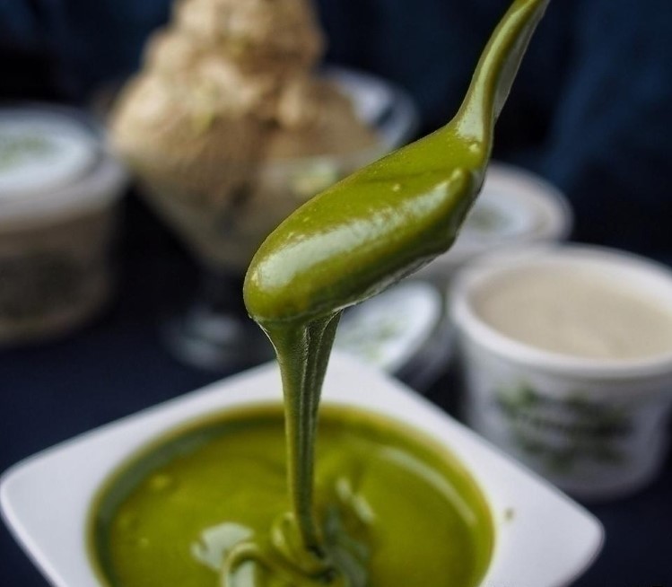 Концентрированный продукт пастообразной консистенции зеленого цвета с насыщенным вкусом и ароматом фисташки. Область применения: используется для придания вкуса и аромата фисташки выпечным изделиям и кремам.Рекомендации по применению: пастут подогреть на водяной бане или в микроволновой печи до текучего состояния при температуре 28-42°C и ввести при постоянном помешивании в продукт.