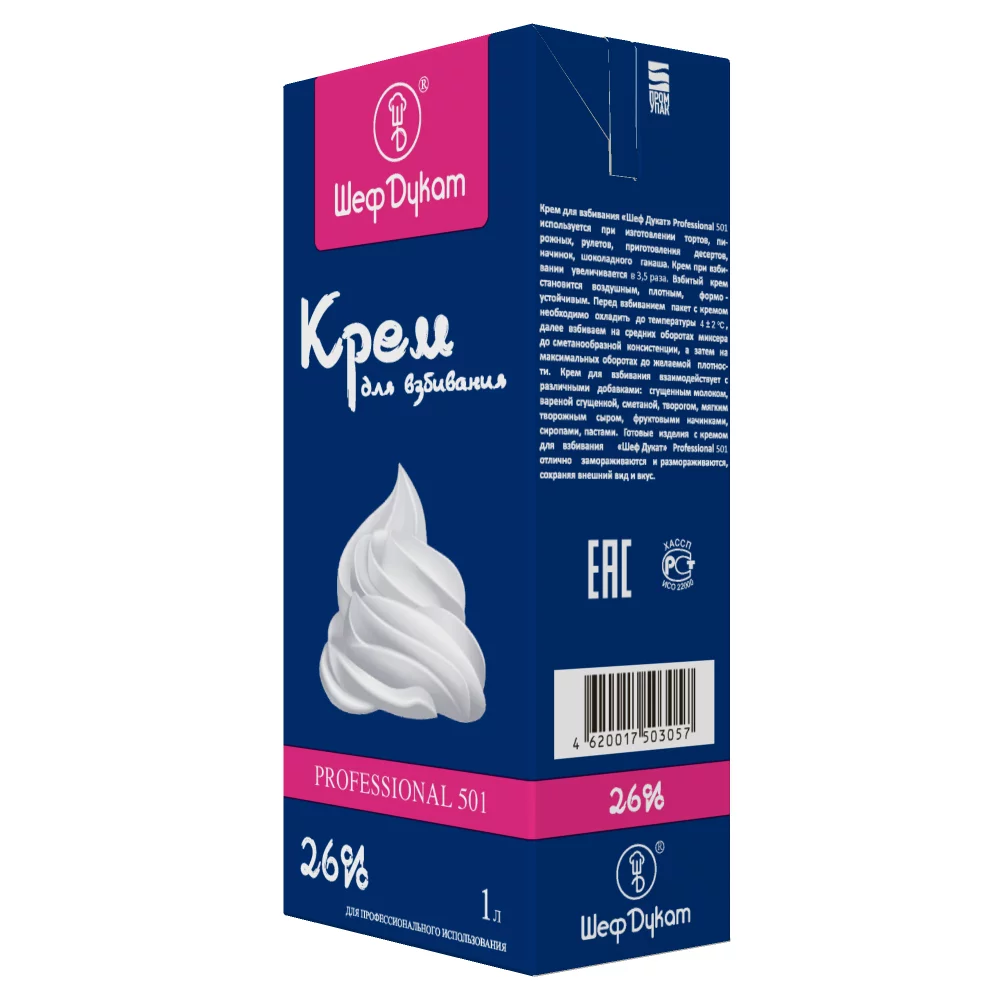 Сливки растительные "Шеф Дукат" Профессионал 501 с мдж 26% ( коробка 12 шт х 1 л)