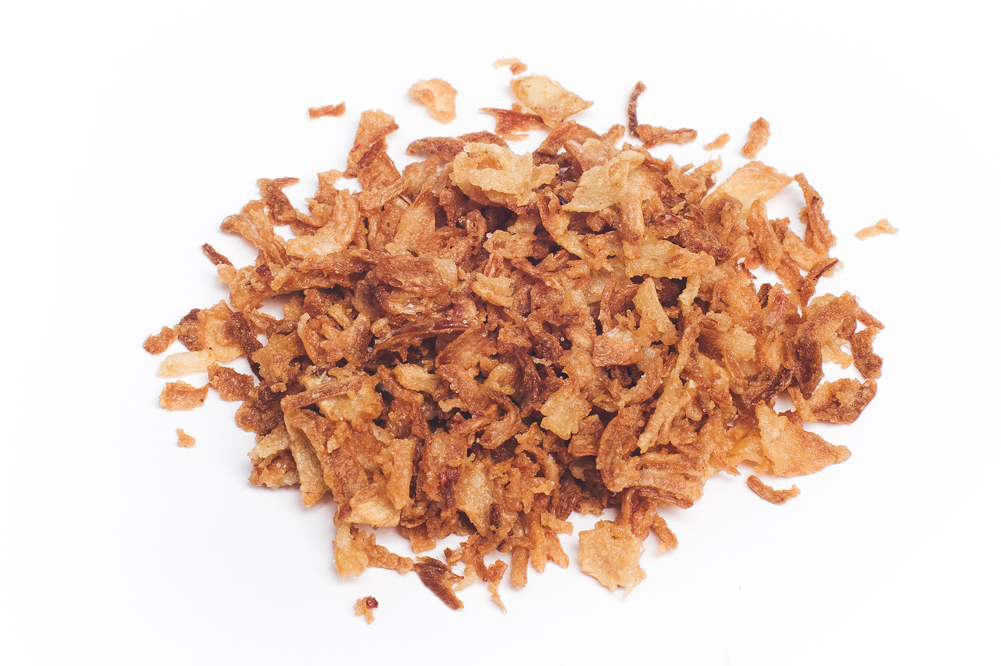 Хрустящий лук в виде хлопьев с размером от 3-10 мм. Особенностью данной рецептуры является повышенное содержание муки при обжарке, что создаёт ярко выраженный хруст продукта.Модель обладает сбалансированным ароматом и вкусом, с характерным ощущением текстуры лука, а также эта рецептура кажется чуть более солёной. Экономичная модель для использования в гастрономических рецептурах и для выпечки.