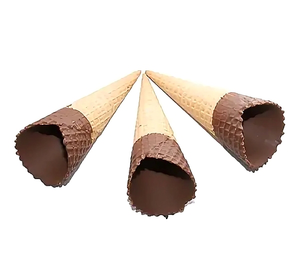Рожок из вафельного теста выпеченный, для мороженого и десертов, частично покрытый кондитерской глазурью, диаметр 47 ± 2 мм, высота 110± 2 мм, толщина не менее 1 мм.Состав: мука пшеничная х/п первого сорта, сахар, масло кокосовое рафинированное дезодорированное, эмульгатор - пищевая добавка соевый лецитин, пшеничные волокна (клетчатка), ароматизатор пищевой "Ванилин". Глазурь кондитерская: заменитель масла - какао нетемперируемый лауринового типа (масло пальмоядровое гидрогенизированное рафинированное дезодорированное, эмульгатор- сорбитан тристеарат, эмульгатор -соевый лецитин), сахар, какао-порошок, эмульгатор - соевый лецитин, ароматизатор пищевой "Ванилин".Содержит глютен.