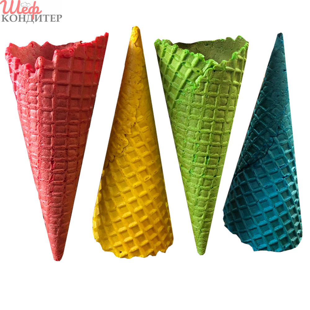 88179. Вафельный рожок 185 ЦВЕТНОЙ АССОРТИ естесв.край (короб 300 шт)