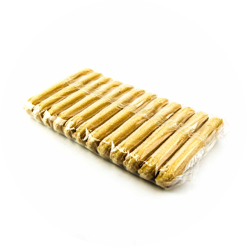 Бисквитное печенье для украшения и приготовления десертов, длина 108 мм ± 3 мм, ширина 30 мм ± 3 мм, толщина 18мм ± 3мм, вес 10 г. В коробке 15 упаковок по 400 г.Хранить в прохладном и сухом месте. Не подвергать воздействию прямых солнечных лучей. Использовать в пропитанном виде вместо бисквита, а также для украшения кондитерских изделий. Идеально подходят для приготовления десерта "Тирамису".