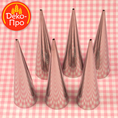 Конусы предназначены для выпечки трубочек и рожков из слоеного теста.Состав: нержавеющая сталь.