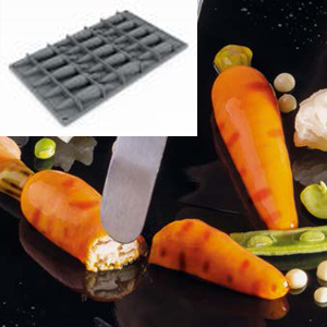Силиконовый коврик серого цвета размером 300х175 мм. Состоит из 15 ячеек в виде моркови размером 105,5 x 21 мм, высотой 16 мм, объем ~ 15 млСостав: Силикон