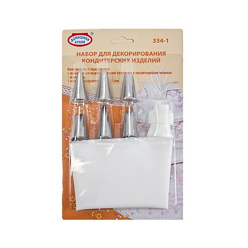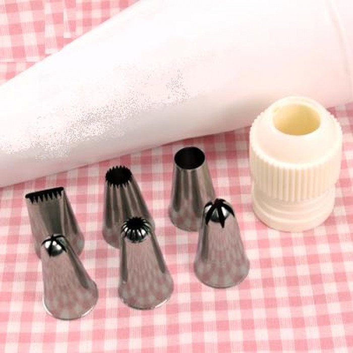 Данный набор является прекрасным решением как для начинающего, так и для опытного кондитера. В этом наборе присутствует всё необходимое для того, чтобы приступить к украшению Ваших изделий кремами, взбитыми сливками и так далее.Упаковка: 6 кондитерских насадок из нержавеющей стали, 1 кондитерский мешок (длина-25см), 1 насадка-переходник.