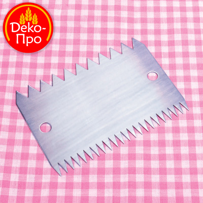 Размеры: 10,5xh7,5см; расстояние между зубчиками: 5 и 10 мм.Скребок используется для придания рельефа и узора поверхности бисквита перед выпеканием или украшения поверхностей мороженого и других десертов. Допускается использование при работе с шоколадом.