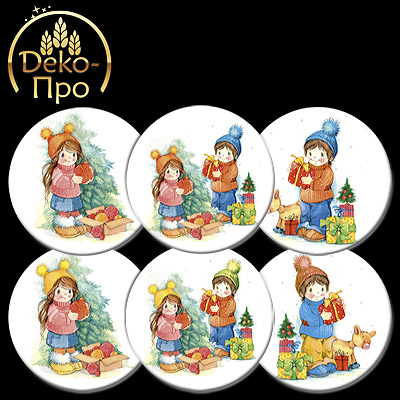 tp60338 Картинки вафельные НОВЫЙ ГОД -ДЕТИ d145 мм, (упаковка 30 шт),6 видов