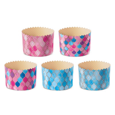 Размеры: диаметр - 70 мм., высота - 60 мм.Описание: представляют собой одноразовые формы из специальной бумаги с рисунком для выпечки и последующего хранения.
