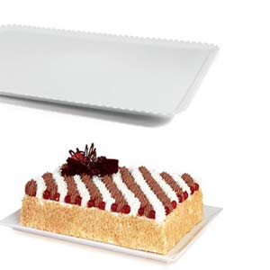 Поднос пластиковый прямоугольный белого цвета для тортов и пирожных.Размер 545х415 мм, высота 12 мм.