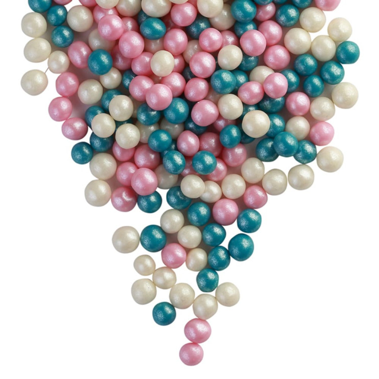 # 174 ДРАЖЕ ЗЕРНОВОЕ взорванные зерна риса в цветной кондитерской глазури ЖЕМЧУГ тем.бирюза,розовый,серебро 2-5 мм (уп1,5 кг)
