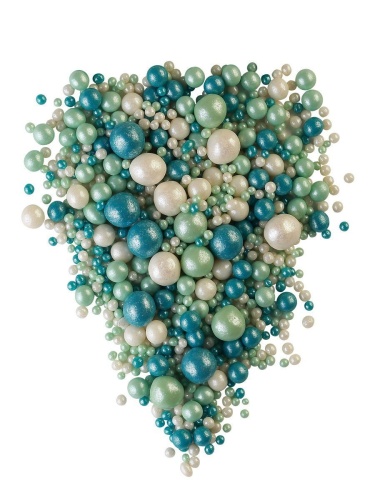 # 122 ДРАЖЕ ЗЕРНОВОЕ взорванные зерна риса в цветной кондитерской глазури ЖЕМЧУГ тем.бирюза,изумруд,серебро (уп1,5 кг)