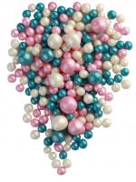 # 195 ДРАЖЕ ЗЕРНОВОЕ взорванные зерна риса в цветной кондитерской глазури ЖЕМЧУГ бирюза, серебро 2-5 мм (уп 1,5 кг)