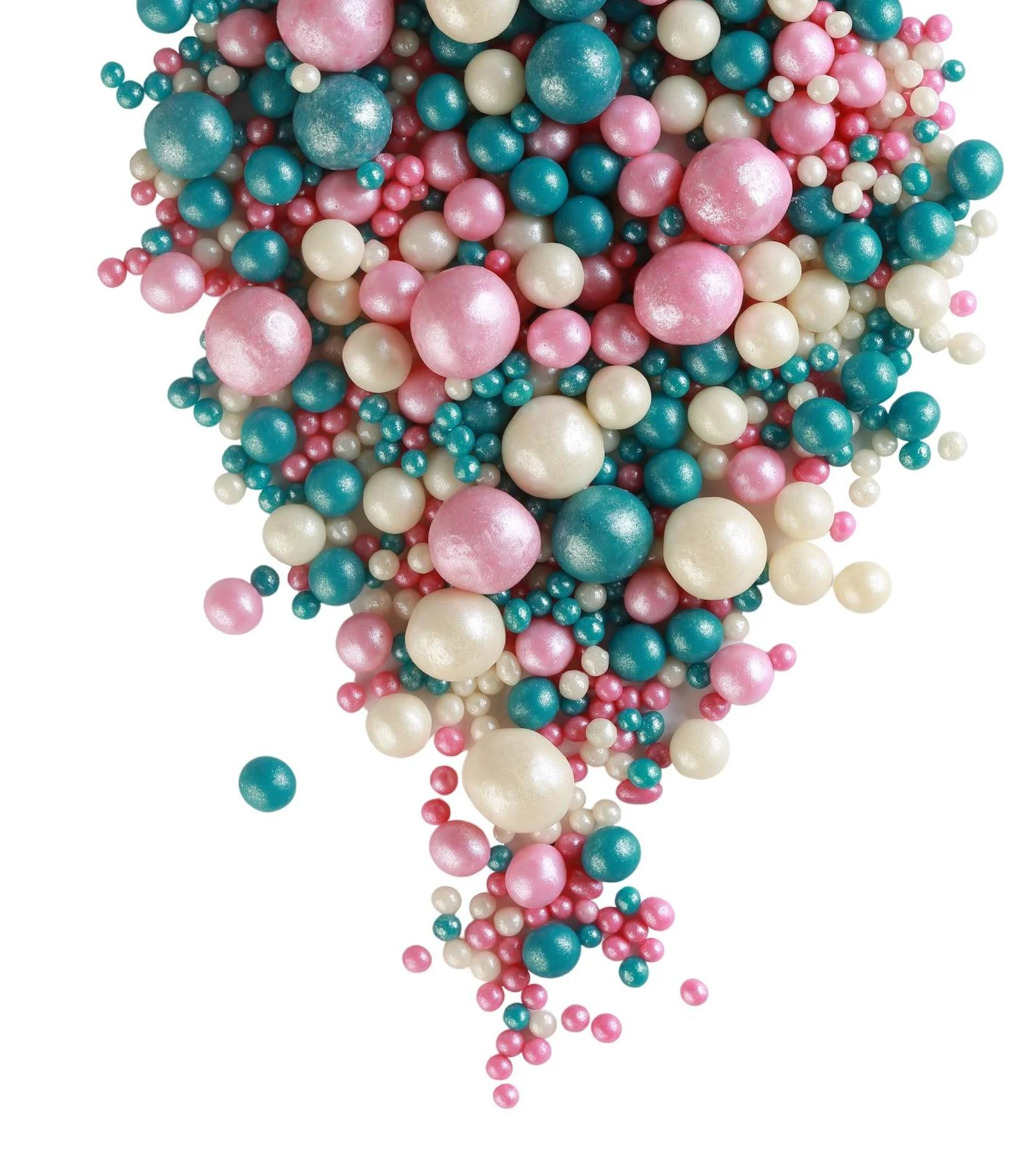 # 243 ДРАЖЕ ЗЕРНОВОЕ взорванные зерна риса в цветной кондитерской глазури ЖЕМЧУГ розовый,темная бюрюза,серебро (уп1,5 кг)