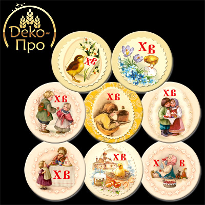 tp32175 Картинки вафельные ПАСХА РЕТРО d 45 мм, (упаковка 240 шт)