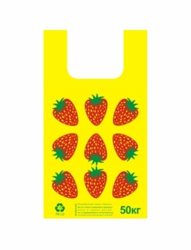 Пакет "Майка" ПНД 30*54+2*7,525мкм с печатью клубника, желтый 100 шт