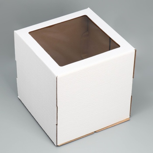 Коробка для тортов с окном 30х30х6см белая (50 шт)