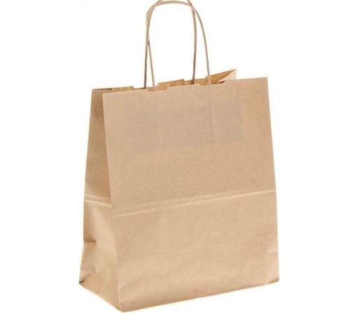 Пакет бумажный 22х12х25см (200 шт) КРАФТ, с кручеными ручками