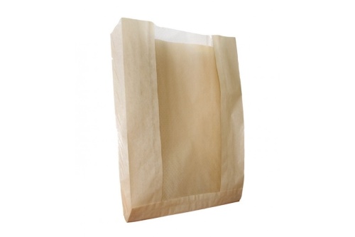 Пакет бумажный 330*200*90мм КРАФТ б/п,с окном 95 мм (2500 шт/кор)