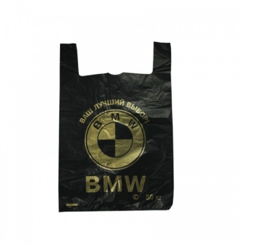 Пакет "Майка 44х63-30мкм"BMW"золот 100/500 шт/кор