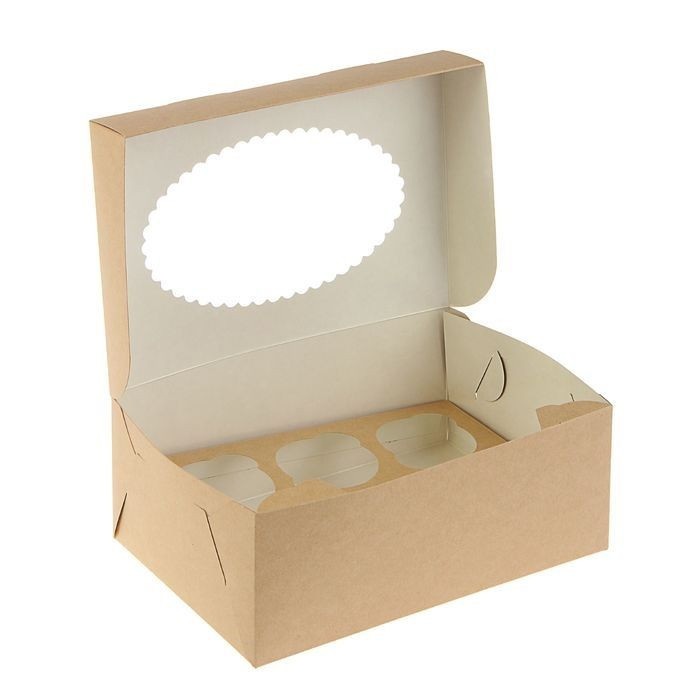 Короб картонный под 6 капкейков с окном 250*170*100 (100 шт)