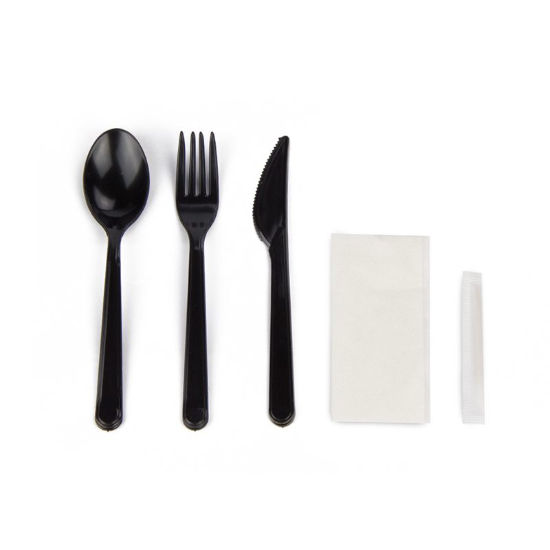 Набор "Индивидуальный №4 ПРЕМИУМ (Вилка черн,Нож черн,ложка черн+Салфетка бум.)1/500 шт