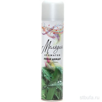 Освежитель воздуха "Мелодия ароматов" после дождя представляет собой аэрозоль объемом 285 мл.