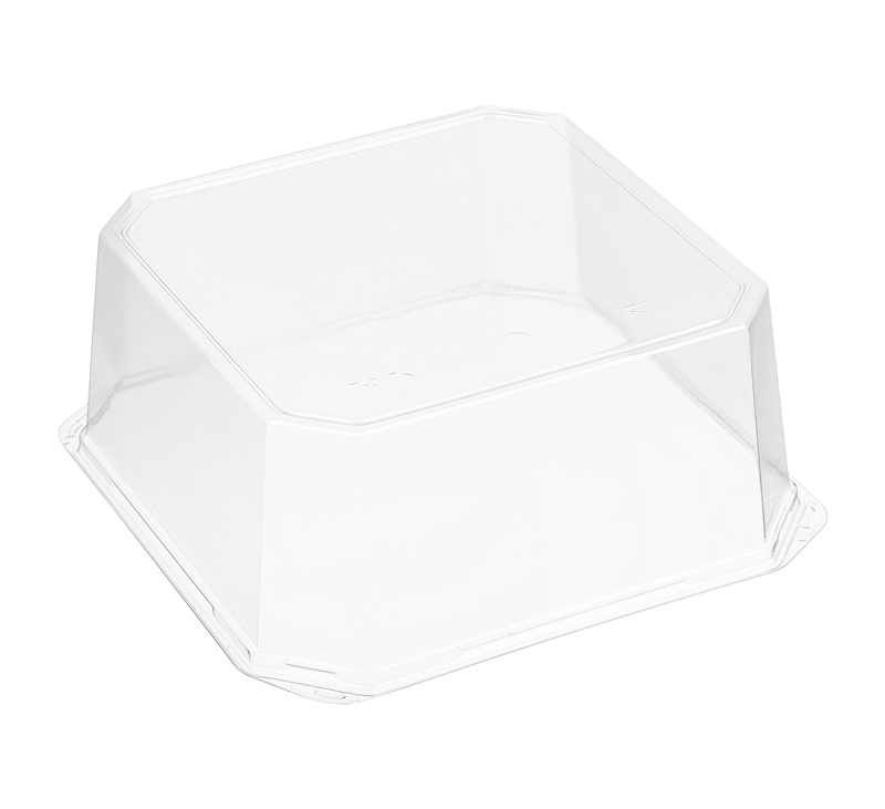 Крышка Т-017КНН (ПЭТ) безреберная предназначена для фасовки тортов и используется в комплекте с цветным дном Т-017/1Д/1ДШ. Внутренний размер комплекта 175х175х61мм.Упаковка: 180 шт.